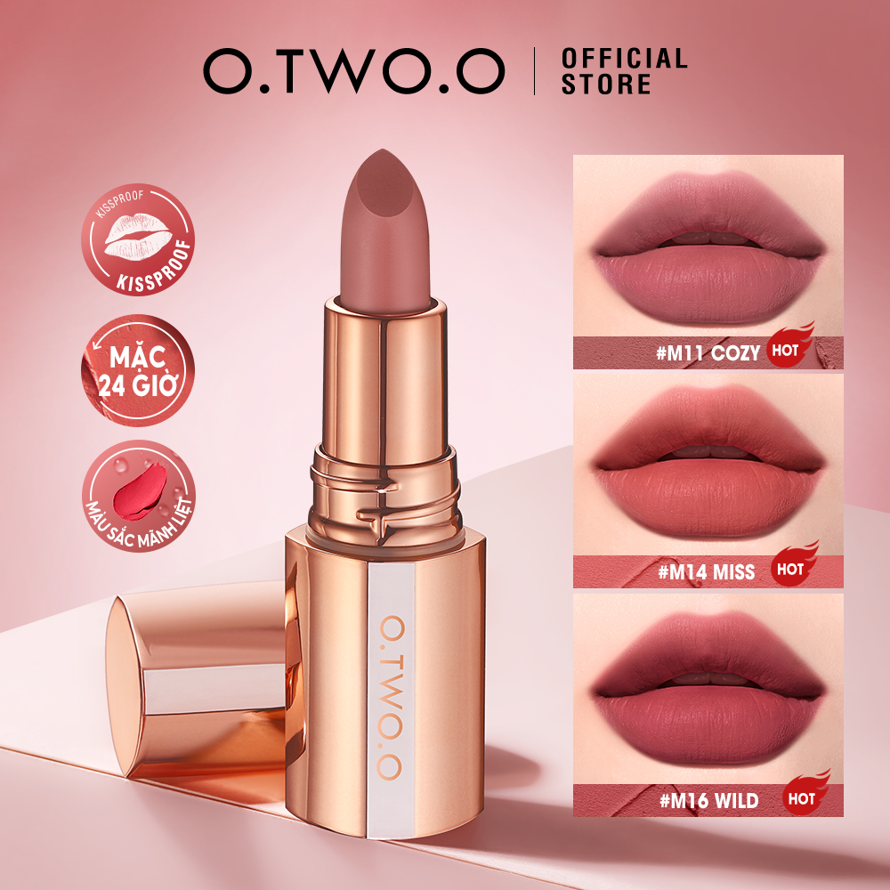 O.TWO.O Son môi matte Son bóng Mềm mịn Nude Lâu trôi không thấm nước Không dính cốc Màu sắc đậm Lip Gloss 8 màu